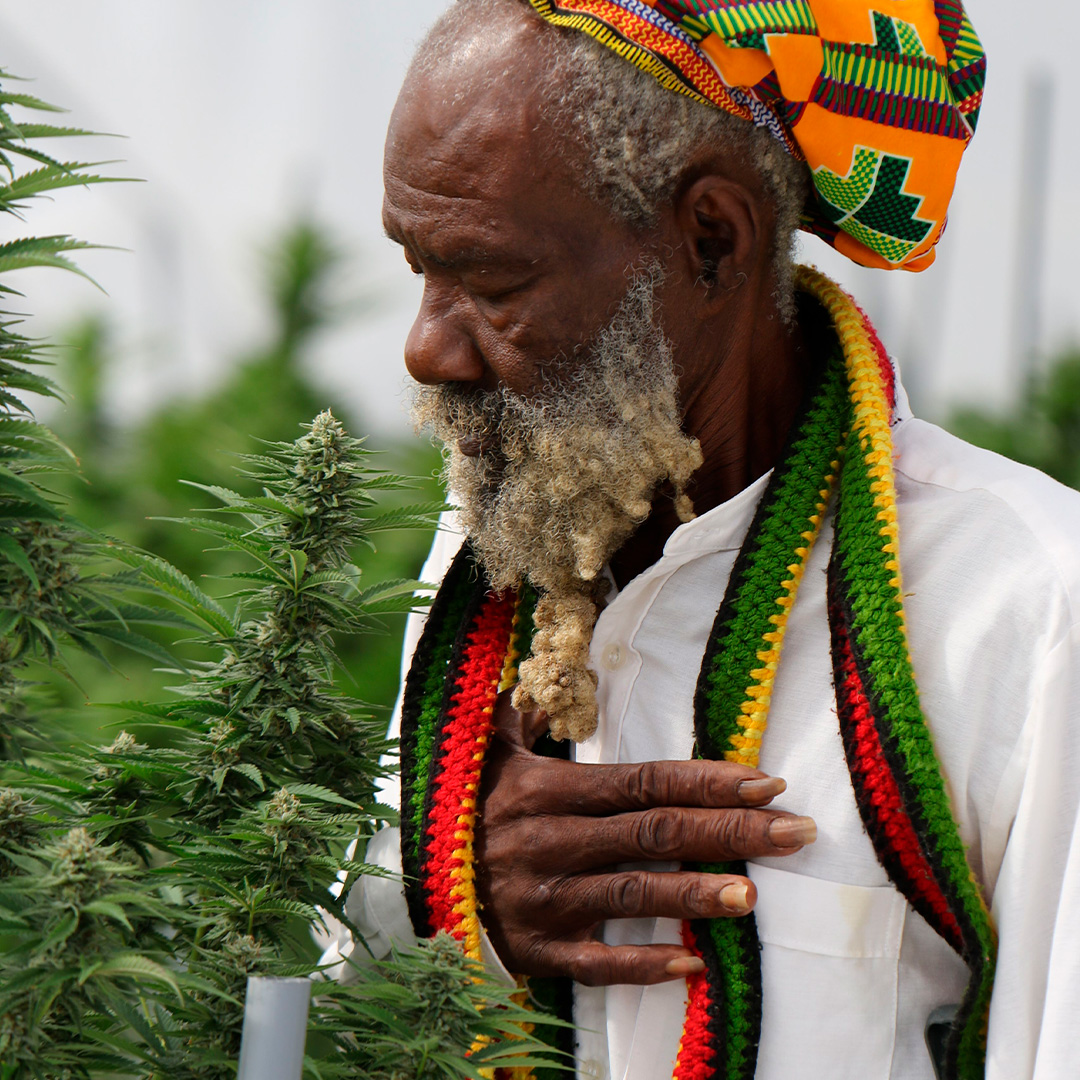 Uso cerimonial da cannabis e conexão com o movimento Rastafari.